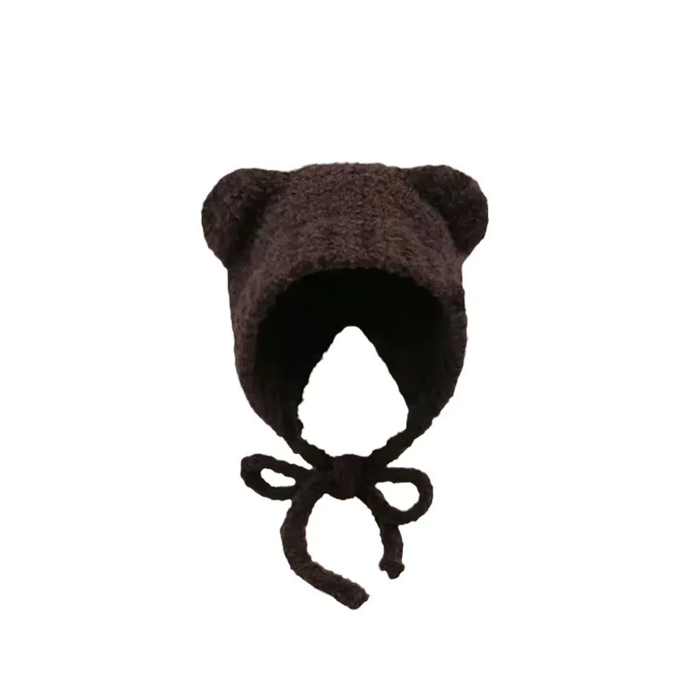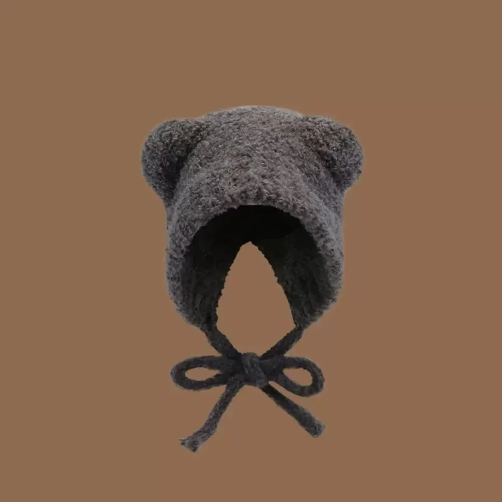 New Lambhair Winter Harajuku Y2K Beanies Knitted Hat Women Lace up Warm Thick Hip Hop Skullcap Short Hat Unisex Basic Cap Bomber